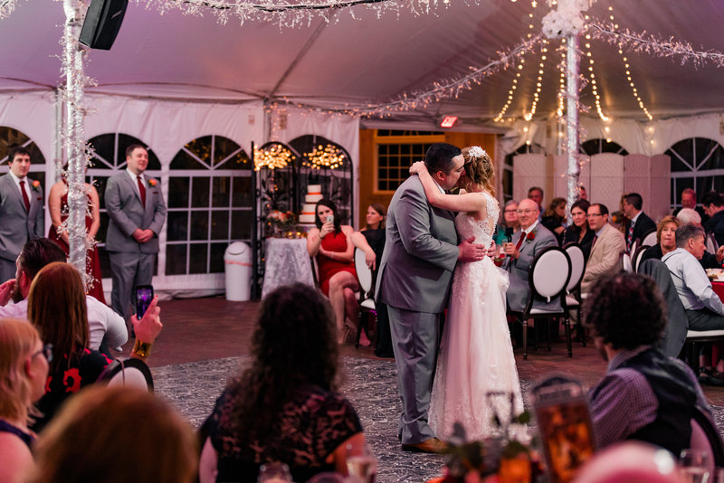 We actually prefer that you share your first dance right at the door. This will allow for your guests on both balconies and around the room to witness your first and parent dances. It also is easier for us to photograph than up on the catwalk or on the dance floor and will provide you with a better backdrop for photos.