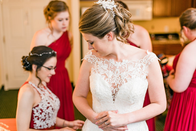We suggest getting hair and makeup done at The Courtyard by Marriott, but getting into your dresses at The Barn on Bride's carriage house. The Barn allows you to arrive 2 hours prior with the option to add on hours. We've found it's helpful to add an extra hour, especially if you're sharing in a first look. This gives you enough time to arrive, get in your dress, and take pictures without any stress.